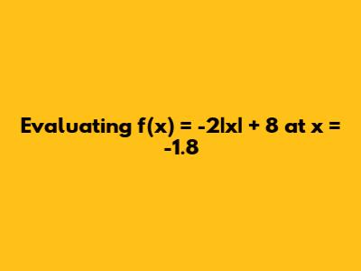 Let's dive into evaluating the function f(x) = -2|x| + 8 at a specific point, x = -1.8. This involves understanding the absolute value function and how it affects the overall result. This article will provide a step-by-step guide on how to substitute the value of x into the function and simplify the expression to find the corresponding value of f(-1.8). Understanding how to evaluate functions is a fundamental skill in mathematics, and this example will help solidify your understanding of absolute value functions in particular. We will break down the process into manageable steps, ensuring clarity and comprehension for anyone looking to master this concept.